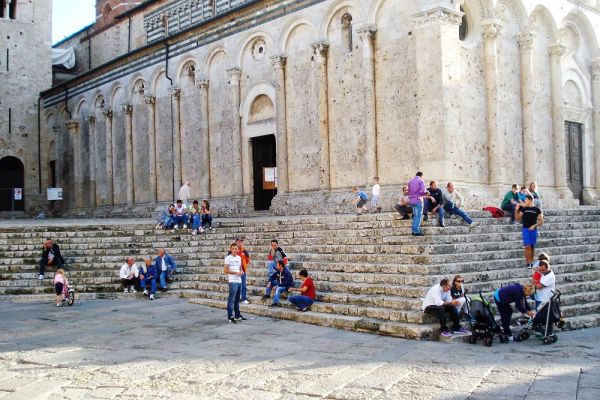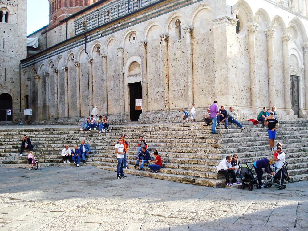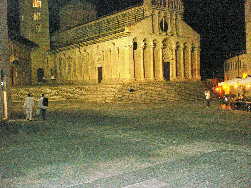 Von der Küste kommend, sind Häuser und Türme bereits von weitem zu entdecken. Dieser erste flüchtige Blick ist nicht besonders schön, eher gleichgültig. Die Stadt liegt abseits und am Rand der Toskana. So viele kulturelle Höhepunkte wie Florenz oder Siena hat sie nicht. Einige davon gibt es aber auch hier. Eine so schöne, große und lebendige Piazza lässt sich andererseits woanders nicht so leicht finden. Romanisches Mittelalter prägt die Città Vecchia Der Dom San Cerbone schenkt der Piazza Erhabenheit und Stolz. Sie ist das geistige und weltliche Zentrum der Stadt. Die Piazza weist keine geometrische Regelmäßigkeit auf. Die Besucher werden in den Bann von einem der schönsten Plätze in der Toskana gezogen. Dabei überflutet sie kein Touristenstrom. Abends saßen wir gerne auf der Piazza. Entweder im "Tre Archi" oder im "Da Vanni". In beiden Pizzerie gutes und einfaches Essen. Auf der großen Freitreppe unterhalb der Kathedrale schauten wir den Menschen zu, die sich die Neuigkeiten des Tages erzählten. Oder wir nahmen teil am abendlichen Giro der Einheimischen, die über die Piazza und den Gassen der Città Vecchia spazierten. Über steile Treppengassen führt der Weg zur Città Nuova und der Festung, die gotisch geprägt sind. In Massa fanden wir das einfache und unkomplizierte Leben.
