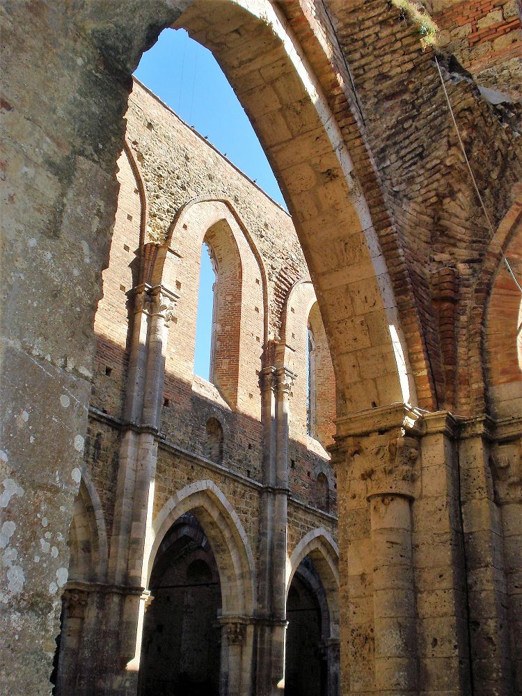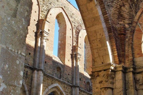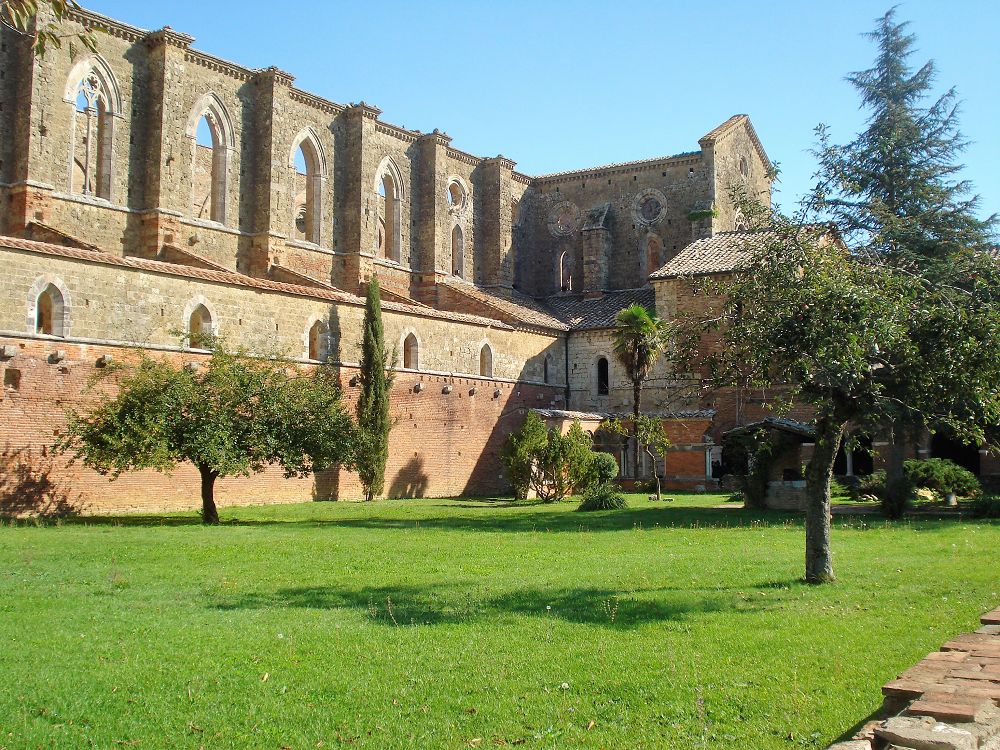 Die Abtei von San Galgano ist eine der bedeutendsten gotischen Bauwerke Italiens. Die Bau der Kathedrale begann 1224. Bereits im 14. Jahrhundert begann der Niedergang der Abtei durch Hungersnöte, Pestepidemien und Überfälle. Mitte des 16. Jahrhunderts begann der Verkauf der Bleidächer der Abtei. 1783 stürzten der Glockenturm und das Dach der Kirche ein. Heute stehen nur noch die Außenmauern des Sakralbaus Dies verzaubert diesen Platz in einen mystischen und magischen Ort. Die Abtei bildet auch die Kulisse für kulturelle Veranstaltungen.