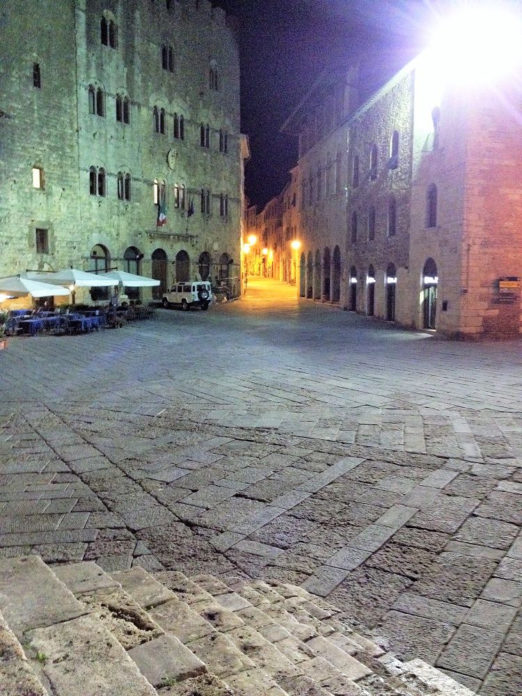 Abends besuchen wir die Taverna del Vecchio Borgo. Die Taverna befindet sich in einer kleinen Seitenstraße unterhalb der Kathedrale. Zwei enge Räume mit schönem Tonnengewölbe. Der Chef Claudio Bindi begrüßt uns und erkennt uns sogar wieder. Später erzählen wir mit ihm über die vergangenen Zeiten. Beste toskanische Küche gibt es hier, wie z. B. das auf dem Eisengrill zubereitete Tagliata di Fiorentina, Wildschweinragout mit Oliven oder die hausgemachte Pasta mit Wildsugo. Das Gran Misto di Antipasti essen wir aber am liebsten. Sieben kleine Teller mit allem, was die toskanische Küche bietet. Die Speisekarte zeigt sich seit unserem letzten Besuch unverändert.